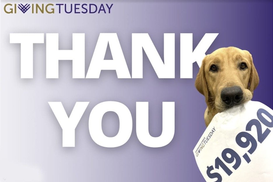 We are overwhelmed with gratitude and thrilled to announce that with your help, Paws for Purple Hearts raised $19,920 on Giving Tuesday 2020.