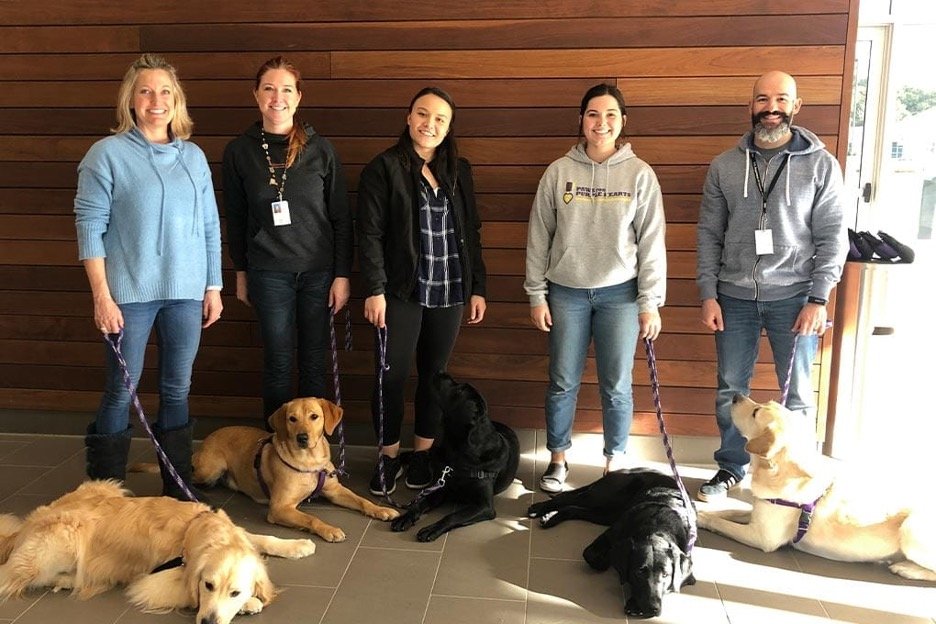 Client training is one of the most important and also enjoyable things we do here at Paws for Purple Hearts. Matching people with their perfect canine partner is a truly amazing experience. It includes a great deal of learning about the human-canine bond. Dogs are not robots. They have feelings and they can make mistakes. It’s important to learn how to help your partner, be they human or canine. Have you noticed at home that your dog follows you around, nudges your arm for an ear scratch, or jumps for joy when you come home? That is the bond you created with your dog. That bond is created by positive reinforcement and training, spending time with your dog, and lots of treats and play time. Building a bond and forming a relationship is so important because once you understand what your dog needs, you both are rewarded with a more fulfilling life together.