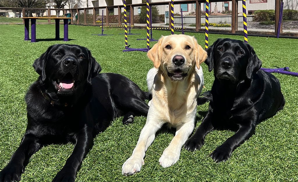 The jumps and weave poles are helpful in a variety of ways for our Service Dogs-in-training. Succeeding in agility courses helps Service Dogs-in-training to build their confidence, work on their coordination, and to overall help them to bond with their handler through a fun experience.