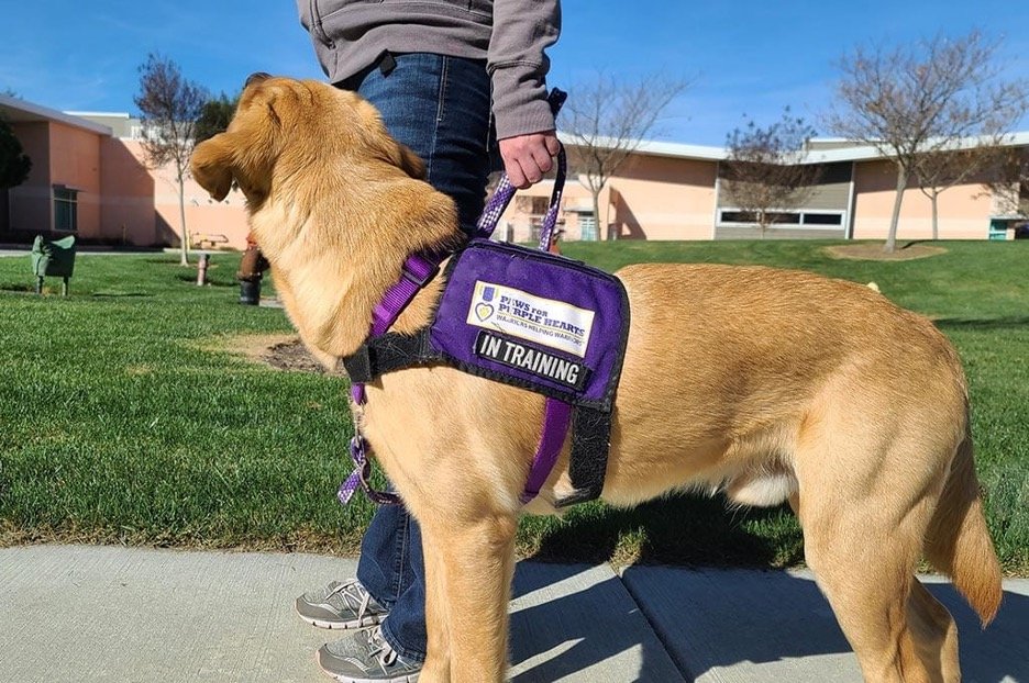 Paws for Purple Hearts service dogs are specially trained to help and care for their owners at all times. This includes when they’re outside and in public. Please do not distract them by making quick gestures, petting without getting permission or making noises that might break a dog’s focus.