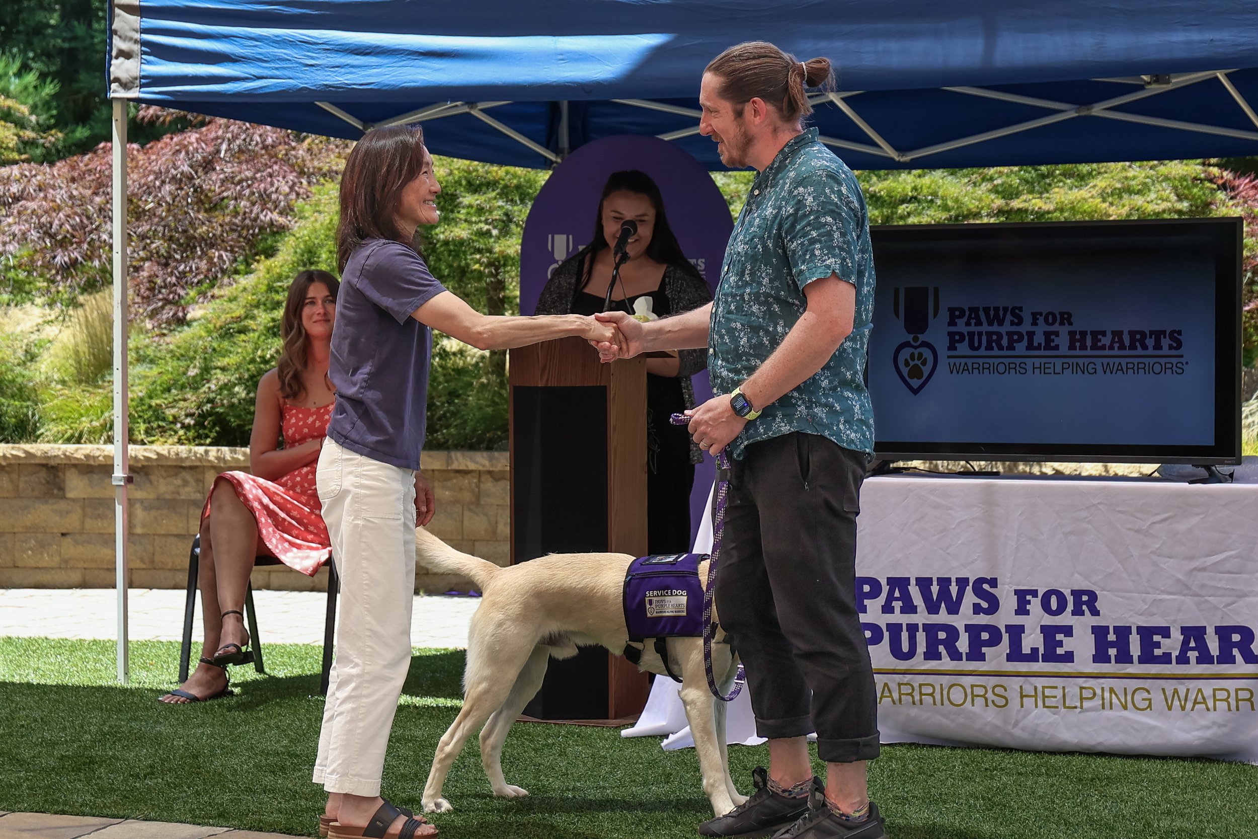 Paws for Purple Hearts improves the lives of America’s Warriors facing mobility challenges and trauma-related conditions such as PTSD and TBI by providing the highest quality Assistance Dogs and canine-assisted therapy programs; and by building public awareness about the important role dogs play in helping Warriors along the road to recovery.