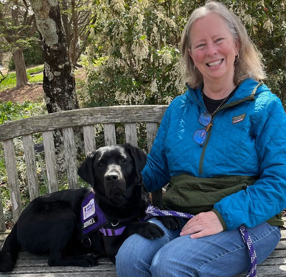 Depending on what stage of training the dog is in, Puppy Parents are sometimes provided with a “Service Dog-In-Training” vest allowing greater public access. Carolyn and Booth go on all sorts of adventures together. They go birdwatching, shopping, to sporting events, restaurants, supermarkets, shows, and so on! Carolyn says, “I want to ensure Booth’s success, that’s why we go to as many places as possible.”