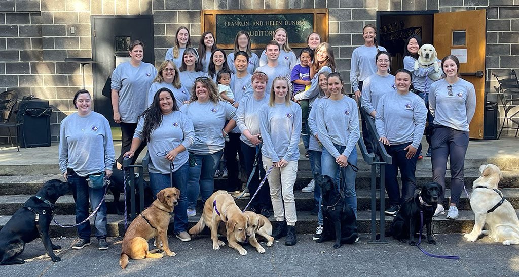 Just down the road on our property is a massive field that allowed our dogs to wander together with staff, as well as a beautiful creek where morning playtime occurred! The sunny weather in town allowed for many swims for our dogs before they joined us in the auditorium building for our presentations. During presentations, we were all able to learn the newest information from the Service Dog Community and unite our combined knowledge afterwards to allow us to return to our various sites ready to make advances in our own communities.