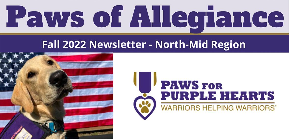 PAWS OF ALLEGIANCE FALL 2022 – NORTH-MID REGIONAL UPDATES PPH Newsletter Nov 22 Written By PPH Staff Here’s our latest ‘Paws of Allegiance’, a Paws for Purple Hearts Newsletter.Click Here to Download Our Newsletter PPH Staff